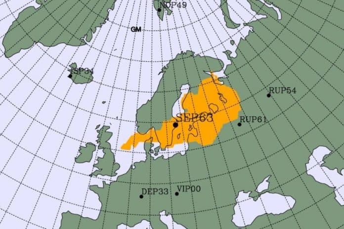 O mapa não possui limites geográficos, mas mostra a origem das partículas nas 72 horas antes de serem detectadas: uma grande área cobrindo parcialmente a Dinamarca, Noruega, sul da Suécia, grande parte da Finlândia, Estados Bálticos e parte do oeste da Rússia incluindo São Petersburgo.