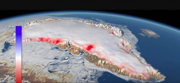 Os mantos de gelo na Groenlândia e na Antártica, cujas taxas de derretimento estão aumentando rapidamente, elevaram o nível do mar global em 1,8 cm desde os anos 1990 e estão de acordo com os piores cenários de aquecimento climático do Painel Intergovernamental sobre Mudanças Climáticas.