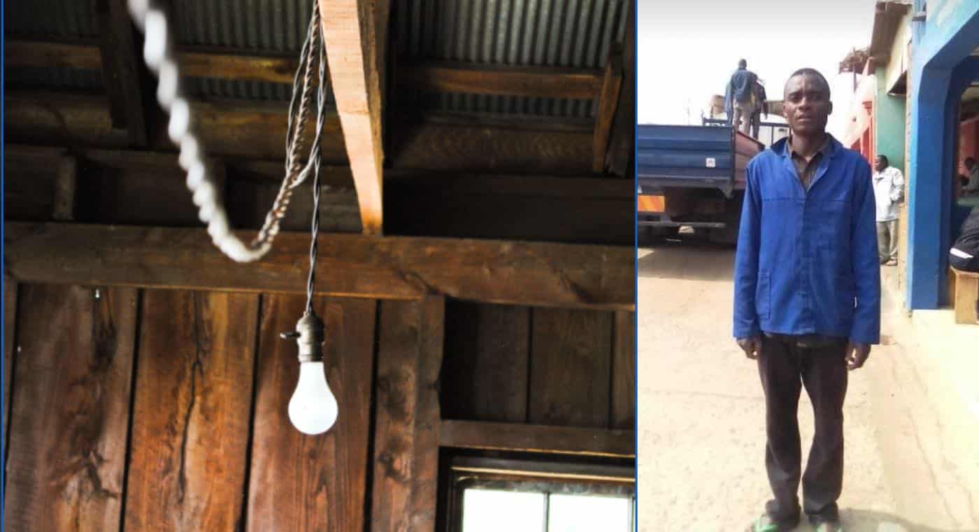Usando um motor de máquina de descasque de milho reaproveitado e um rio veloz, Nkosi criou uma turbina elétrica que agora ilumina casas para ele e seus vizinhos de graça na cidade de Mzimba.
