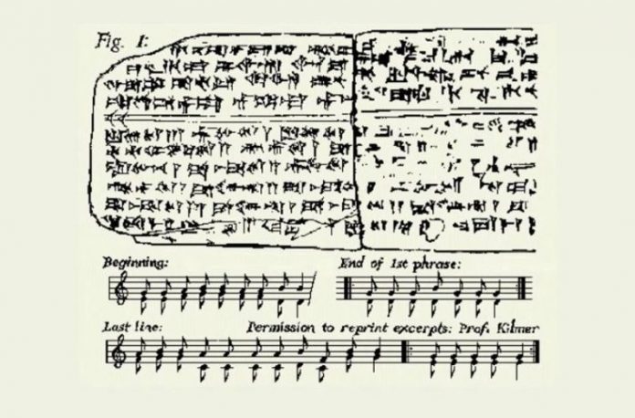 A professora Anne Draffkorn Kilmer, que trabalha como curadora do Museu de Antropologia Lowie em Berkeley, passou quinze anos decifrando as tábuas de barro que foram descobertas e escavadas na Síria por arqueólogos franceses no início dos anos 50. As tábuas, foi confirmado, formavam “um hino de culto completo e é a música preservada mais antiga com notação no mundo”.