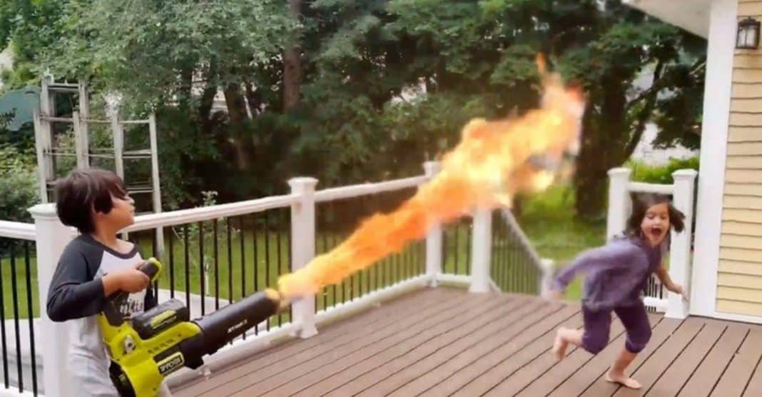 O canadense Daniel Hashimoto viralizou nas redes sociais ao mostrar o brinquedo que criou para seus filhos: um lança-chamas.