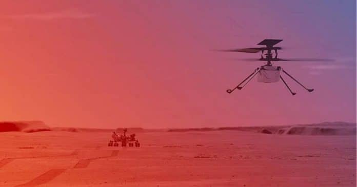 O helicóptero Ingenuity da NASA fez o primeiro voo motorizado em outro planeta.