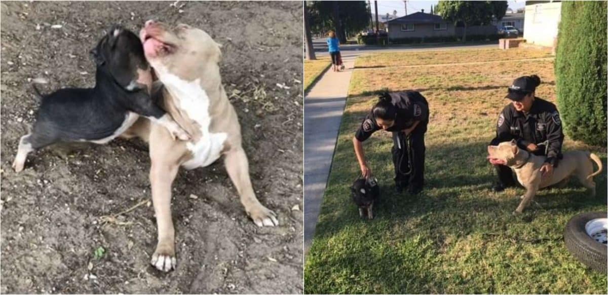 Embora não tenha ficado claro no início de onde eles vieram, a polícia diz que uma coisa nunca foi posta em dúvida: “O leitão e o pit bull são sem dúvidas melhores amigos”.