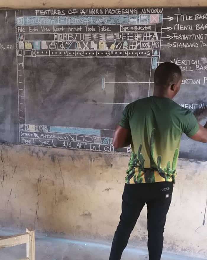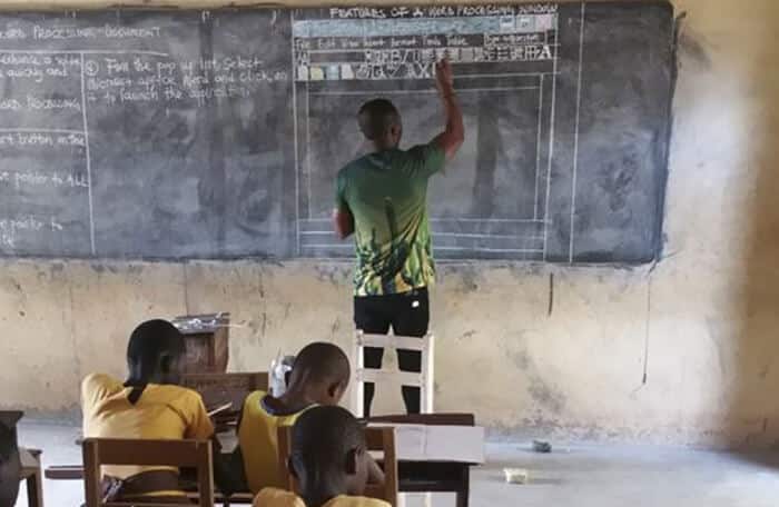 Uma postagem no Facebook de um professor em Gana se tornou viral e ganhou o coração de muitas pessoas, graças a seus métodos incomuns e improvisados de ensino de TIC (Tecnologia da Informação e Comunicação), sem um computador!