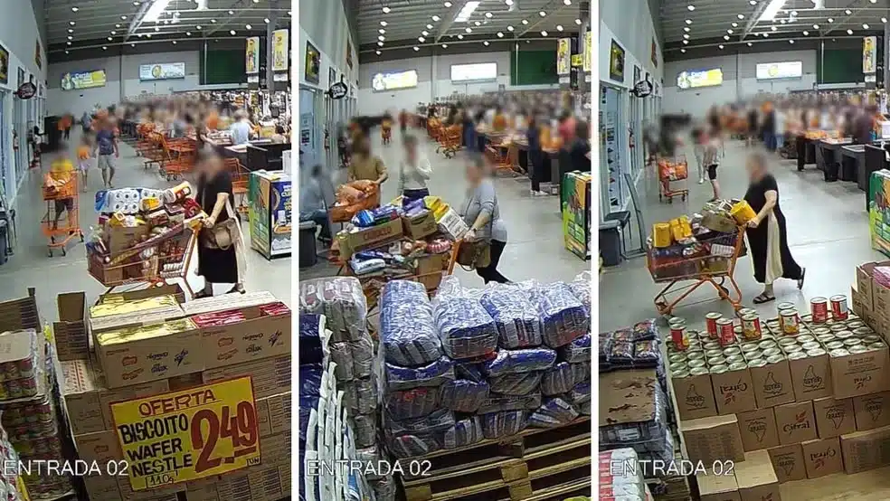 Imagens de câmeras de segurança revelaram que uma mulher flagrada com R$ 10 mil em produtos furtados já havia cometido o mesmo crime pelo menos três vezes no mesmo supermercado.