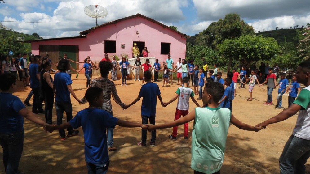Com ensino gratuito e participação da comunidade, ‘Escola dos Nossos Sonhos’, localizada em Bananeiras, já ganhou prêmio global de inovação. Roda de educandos junto a comunidade, em Bananeiras.