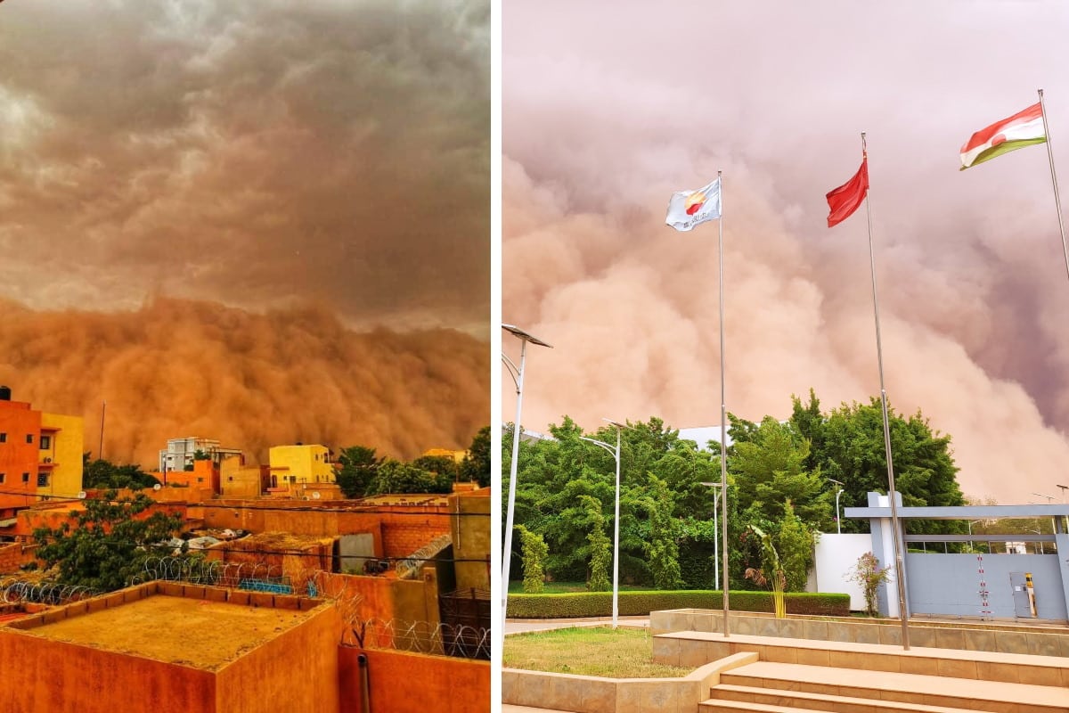 Um imponente muro de poeira avermelhada varreu a cidade, criando uma visão impressionante e ameaçadora. A enorme tempestade começou na segunda-feira, quando atingiu Niamey. Em poucas horas a cidade estava envolta em uma escuridão lúgubre e avermelhada.