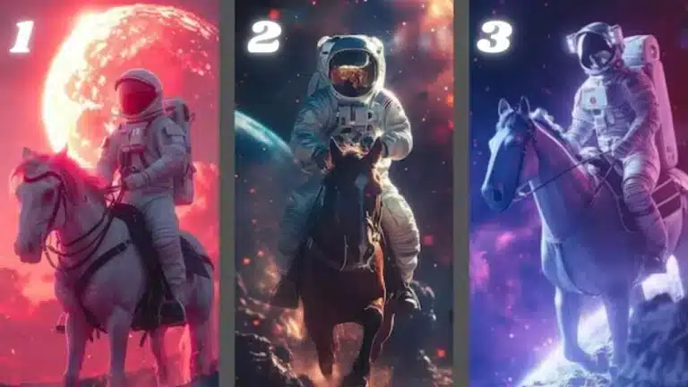 Neste teste, você verá três astronautas cavalgando no espaço. A tarefa é simples: escolha o cavalo que mais chama sua atenção. A partir dessa escolha, você vai descobrir um talento especial que talvez você ainda não conheça. Vamos lá, escolha agora e veja o que esse teste revela sobre você!