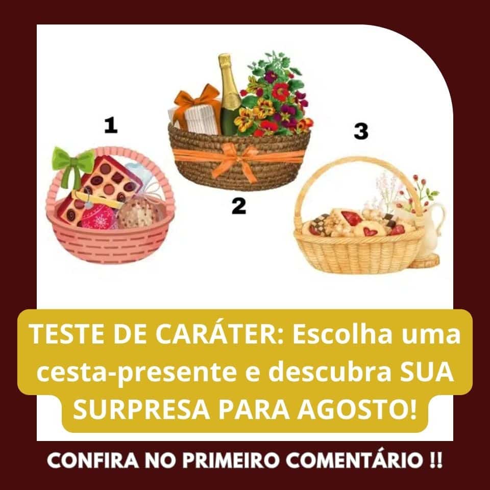Você já se perguntou o que o futuro reserva para você? Agosto é um mês de novas oportunidades e revelações. Neste teste de personalidade, convidamos você a escolher uma entre três cestas de presentes encantadoras.