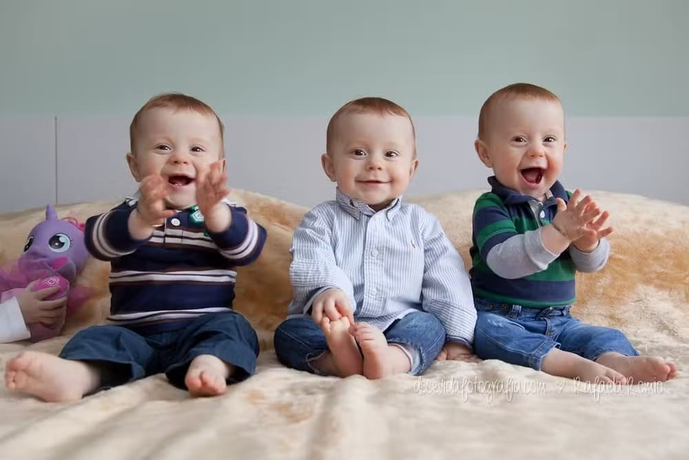 Sim, ao invés de apenas mais um integrante para acompanhar Mônica, a primogênita de apenas 1 ano e 6 meses, o casal foi agraciado com três: Matheus, Murilo e Marcelo.