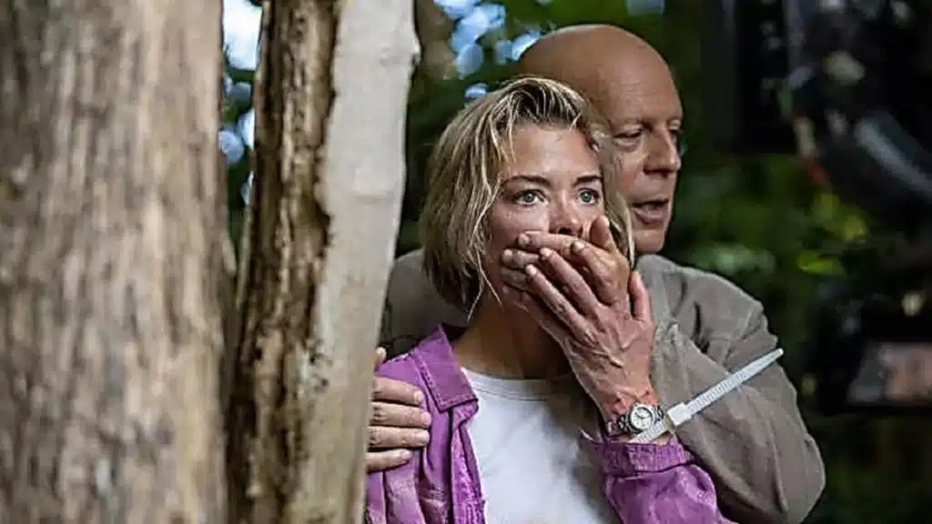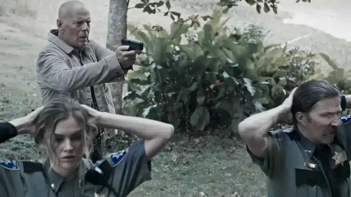 O início de “Fuga da Morte” traz à tona a icônica energia de Bruce Willis, evocando memórias dos dias de “Duro de Matar”, quando o ator imprimia autoridade sobre suspeitos em situações de ação explosiva.