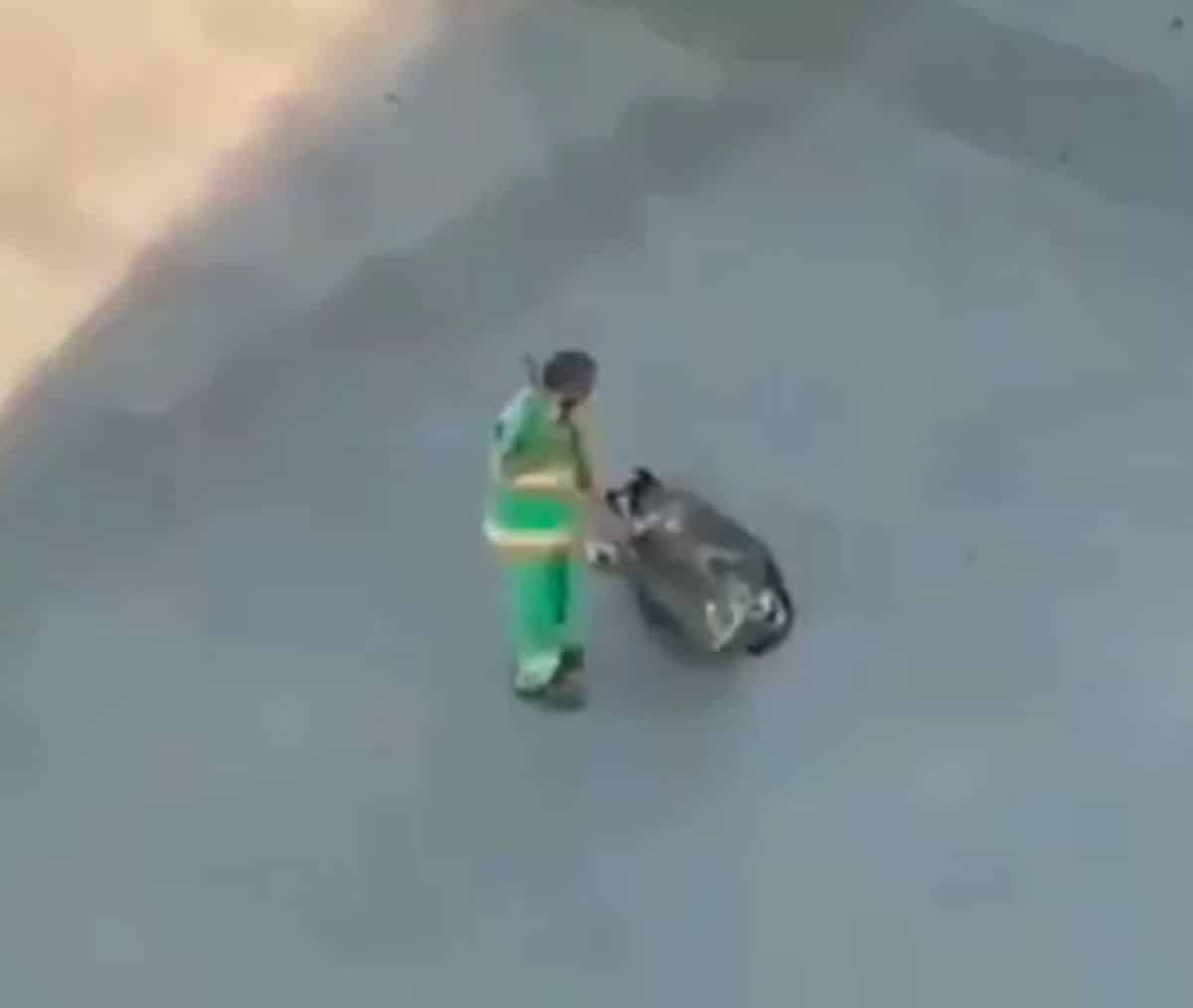 Em um doce vídeo postado no Twitter, um varredor de rua foi pego fazendo uma pequena pausa em suas tarefas normais. Tendo cruzado com um cachorro aparentemente perdido, vagando pacificamente em seu caminho, o varredor decidiu parar.