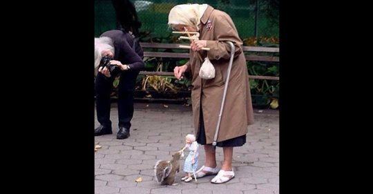Esta foto tirada por Nathalie Kalbach mostra uma mulher de 85 anos enquanto alimenta um esquilo com sua própria versão em marionete no Washington Square Park, em Nova York. Incrível, não é? E a história por trás disso é igualmente incrível.