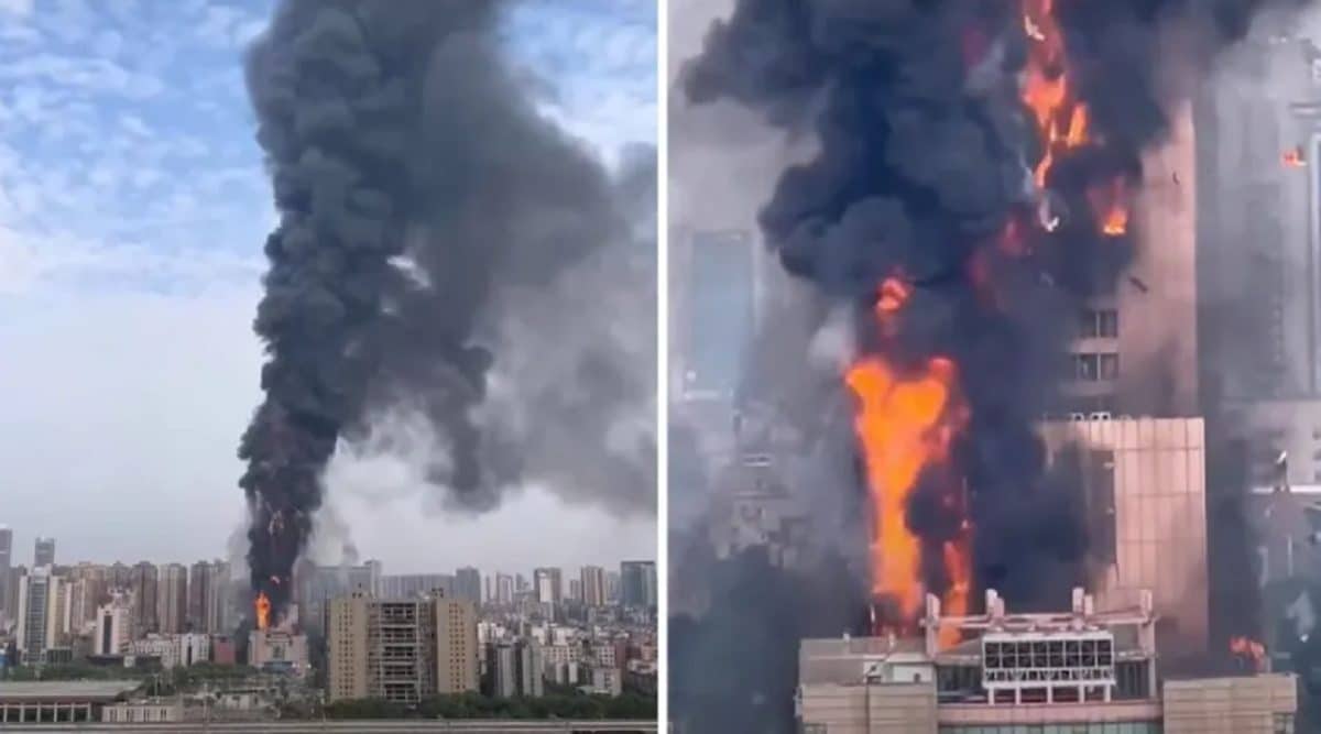 Imagens impressionantes transmitidas pela televisão estatal CCTV ou publicadas na rede social Weibo mostram imensas chamas alaranjadas rasgando toda a lateral do prédio de 42 andares. Uma grossa coluna preta pode ser vista escapando do prédio e pessoas fugindo para não serem atingidas por detritos incandescentes que caem do céu.