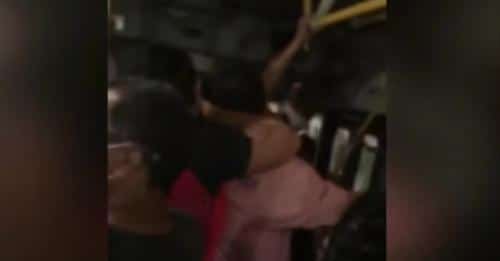 Em um vídeo que circula nas redes sociais, é possível ver o coletivo lotado de pessoas e o exato o momento em que a jovem, que é lutadora de Muay Thai e capoeirista, está com os braços sobre o pescoço do homem praticando golpe de estrangulamento usado nas artes marciais.