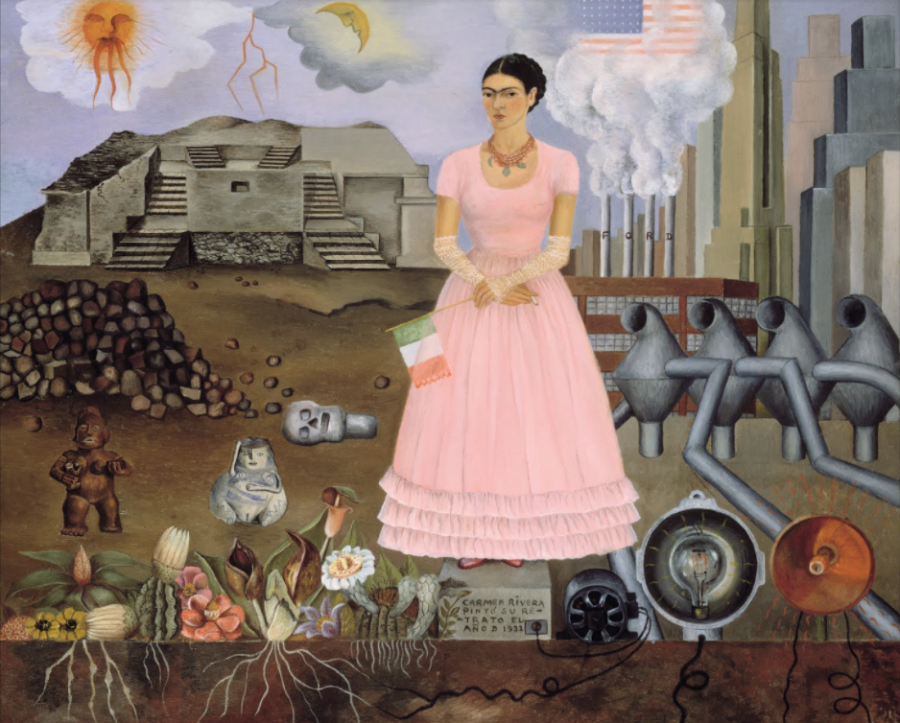 Embora uma superestrela na terra dos mortos, durante sua vida o trabalho de Kahlo foi muito ofuscado pelo de seu famoso marido Diego Rivera. Ela teve apenas dois shows em sua vida, um deles arranjado pelo surrealista Andre Breton, que chamou sua pintura de “uma fita ao redor de uma bomba”. Após sua morte em 1954, ela “praticamente desapareceu do mundo da arte convencional”. Há uma certa ironia em apontar que o fascínio pelo trabalho de Kahlo às vezes se reduz ao interesse por sua biografia, já que foi necessária uma biografia de 1983 de Hayden Herrera para trazê-la de volta à consciência pública. “Quando foi publicado”, escreve Mercimer, “não havia uma única monografia do trabalho de Kahlo para mostrar às pessoas como era, mas a biografia, que poderia ter sido a base para uma novela da Univision, gerou um frenesi de Frida.”